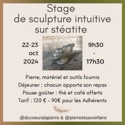 Des sculpteurs adhérents du "Moulin de la Pierre" seront présents et travailleront sur leurs œuvres en cours et vous expliqueront leur technique.