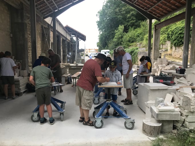 N'hésitez pas à nous rendre visite, vous pourrez y voir le banc de sciage de pierre en fonctionnement ainsi qu'une exposition permanente d'œuvres à l'interieur du Moulin.
